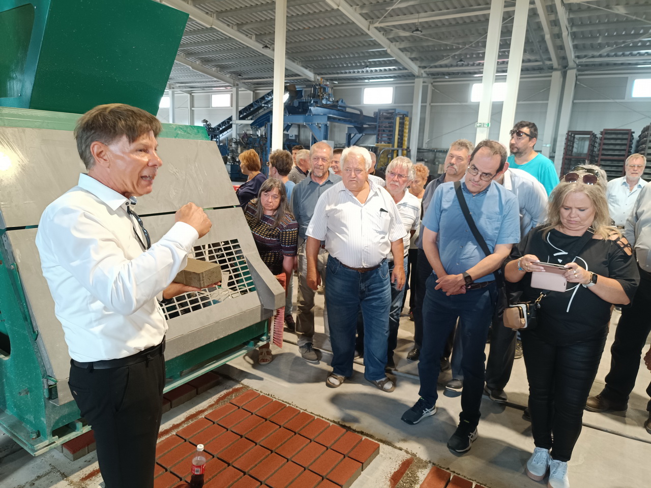 meg működés közben a "térkő-tojó" géppel, a rendezett, kulturált helyszínekkel, a csarnokban