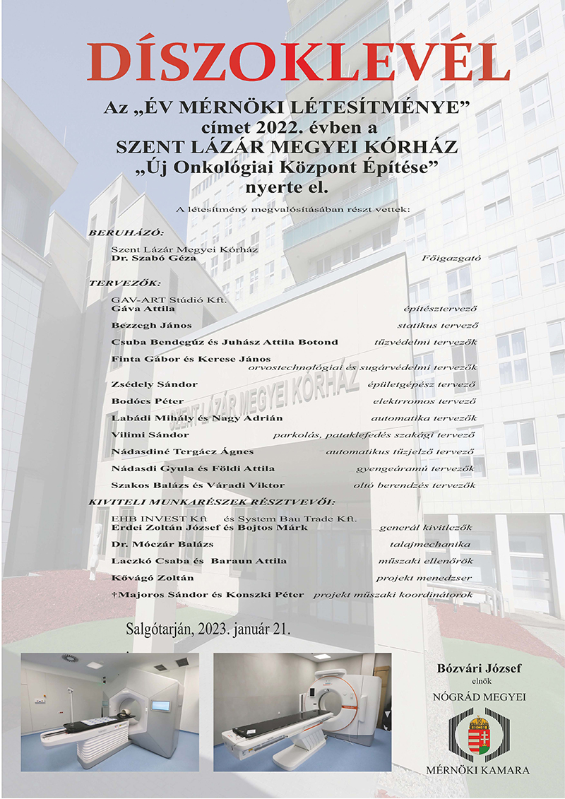 Az év mérnöki létesítménye díjának átadása a beruházónak