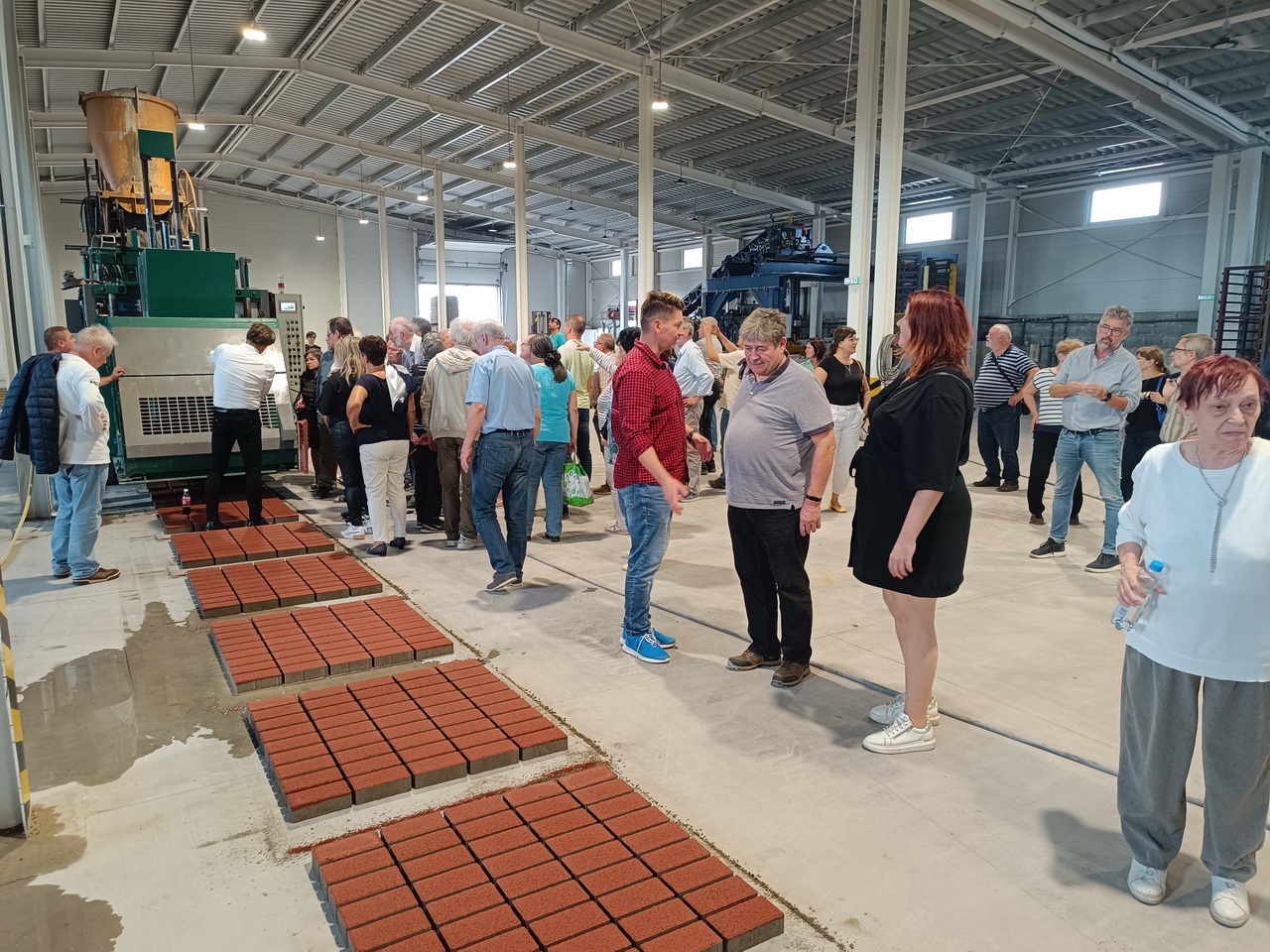 meg működés közben a "térkő-tojó" géppel, a rendezett, kulturált helyszínekkel, a csarnokban