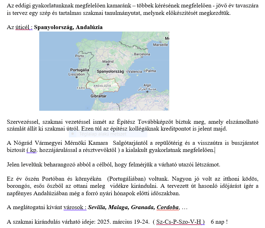 kialakítható szakmai gyakorlati ismeretbővítő tanulmányút megszervezésére.