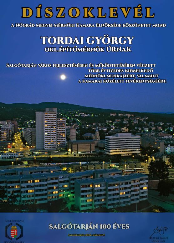 Aktív, gazdag életútját tavaly, a város 100. évfordulóján kitüntető oklevéllel ismertük el.